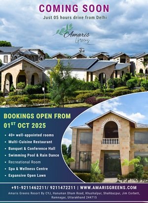 If you are planning a refreshing holiday with loved ones, Amaris Greens is the perfect choice. Surrounded by lush greenery and the peaceful charm of Uttarakhand, the resort offers luxury accommodation, modern facilities, and plenty of relaxation opportunities. Guests can unwind in spacious rooms, enjoy delicious food at the multi-cuisine restaurant, and explore outdoor activities like nature walks and adventure trails. Families love the kids’ zone and swimming pool, making it a complete holiday destination. With a perfect blend of comfort and nature, it stands as the best resort in Jim Corbett for families and leisure travelers. Experience a getaway where every detail is designed to create unforgettable memories. Discover the magic of Amaris Greens by CYJ and enjoy a stay that combines elegance with the wild beauty of Corbett.
